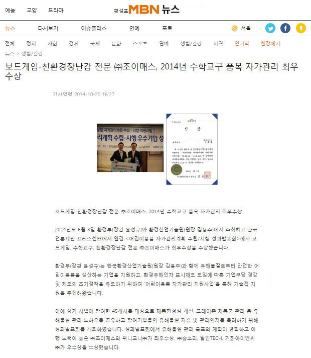 Joymath won the grand prize in (children product self management plan establishment/implementaion presentation)